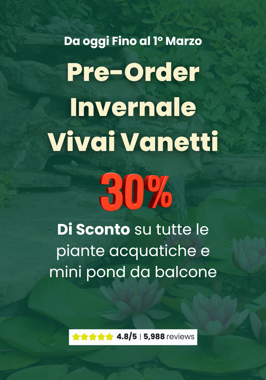 Approfitta ora degli sconti del 30% e rinnova il tuo spazio acquatico con le piante più rare e spettacolaridel nostro Vivaio